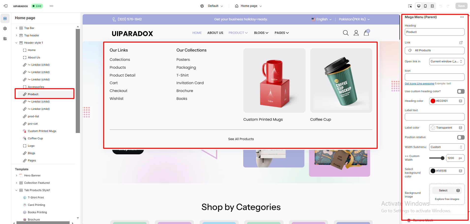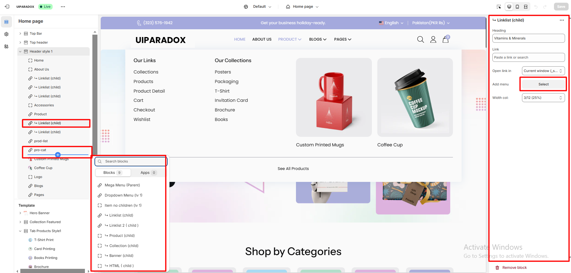 Setting Vertical menus