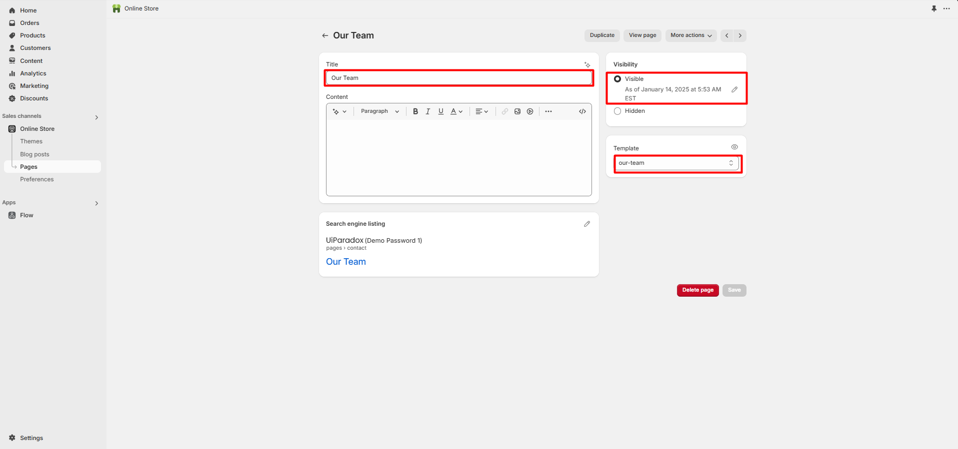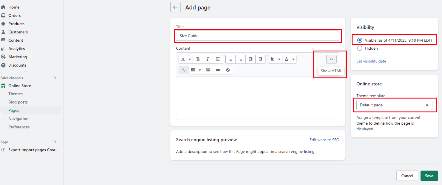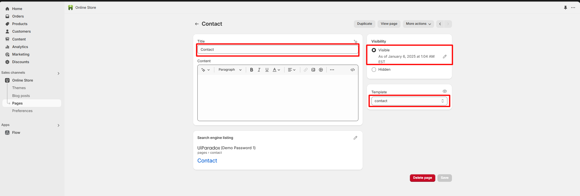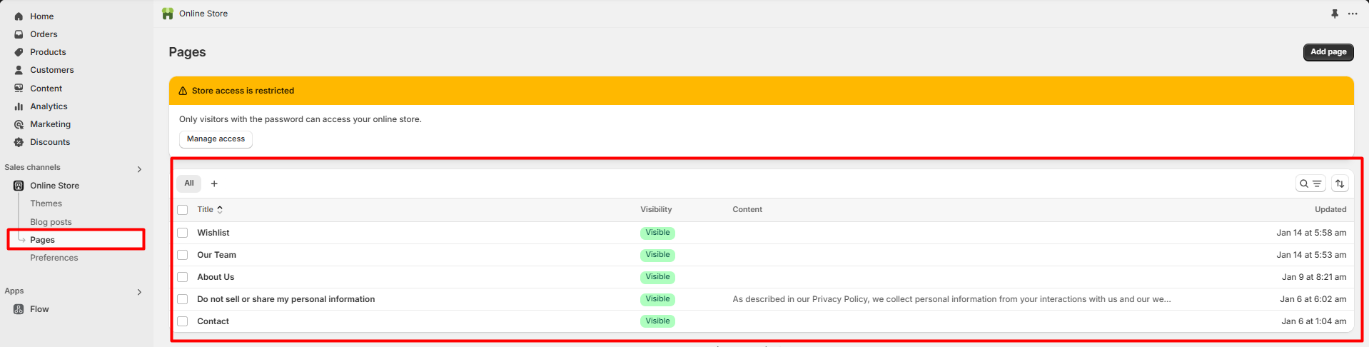 Step 1: Login to your Shopify store, go to Online Store > Pages